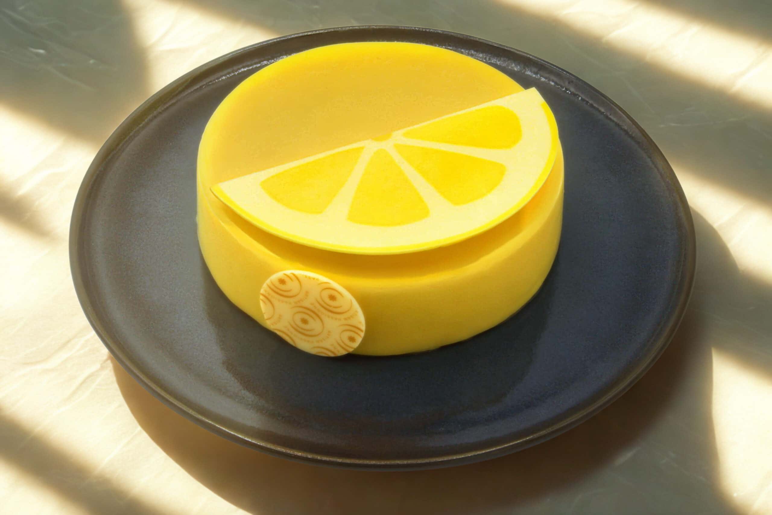 L’ensemble repose sur un biscuit moelleux, sublimé par un croustillant biscuité aux zestes de citron.