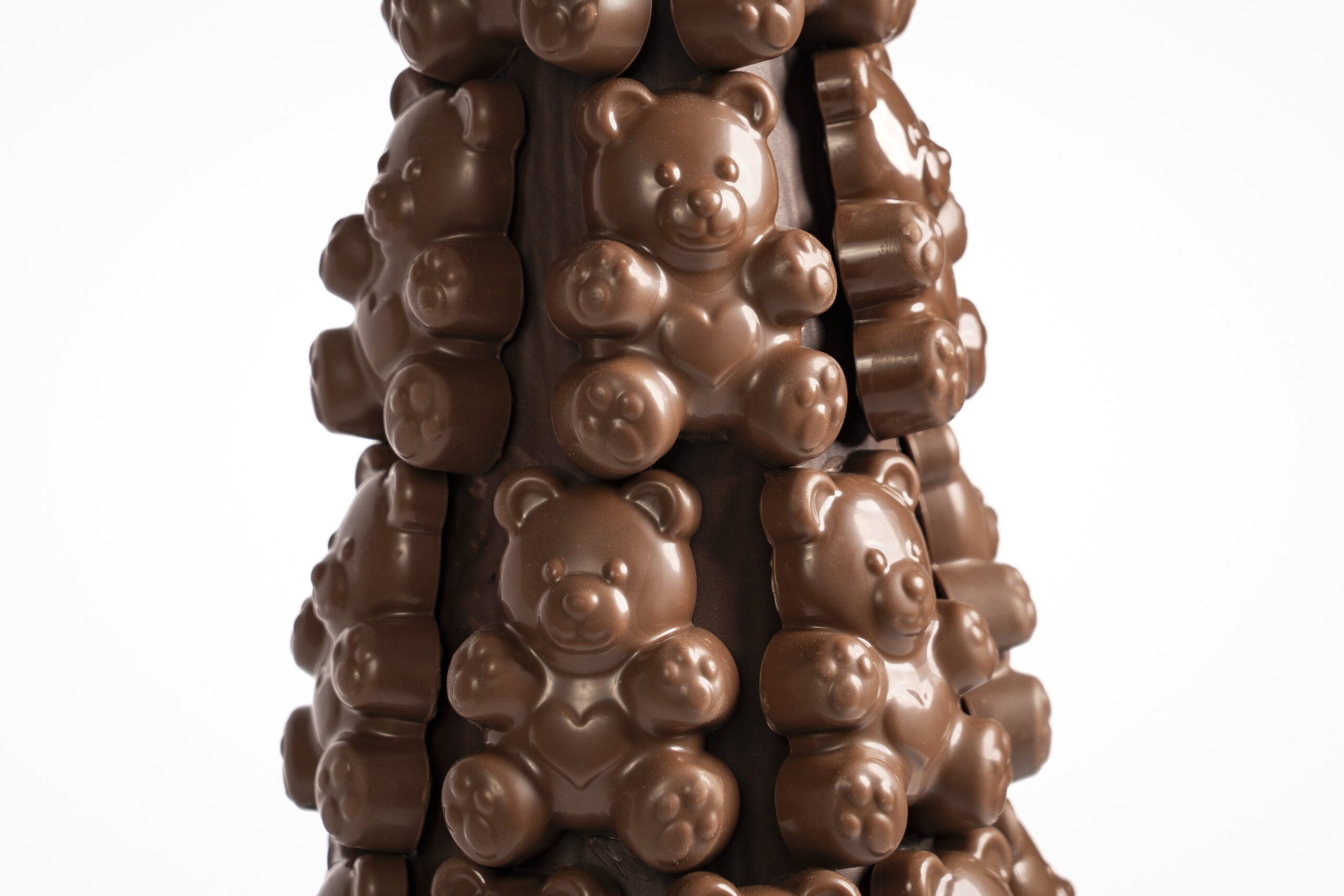 Le cône peut être en chocolat au lait ou en chocolat noir. Taille minimum 24 oursons (soit 5 étages à 51,60€) et taille maximum 65 oursons (soit 9 étages à 139,75€). Pour toute demande, merci de nous contacter